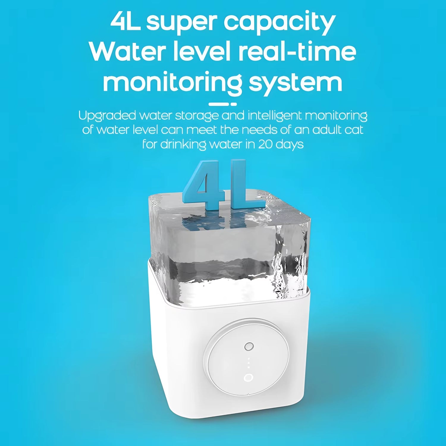 【Smart App Reminders】: Stop worrying about dehydration in cats with real-time water level sync and alerts, and never forget to change filters and clean the pet water fountain with in-app reminders.